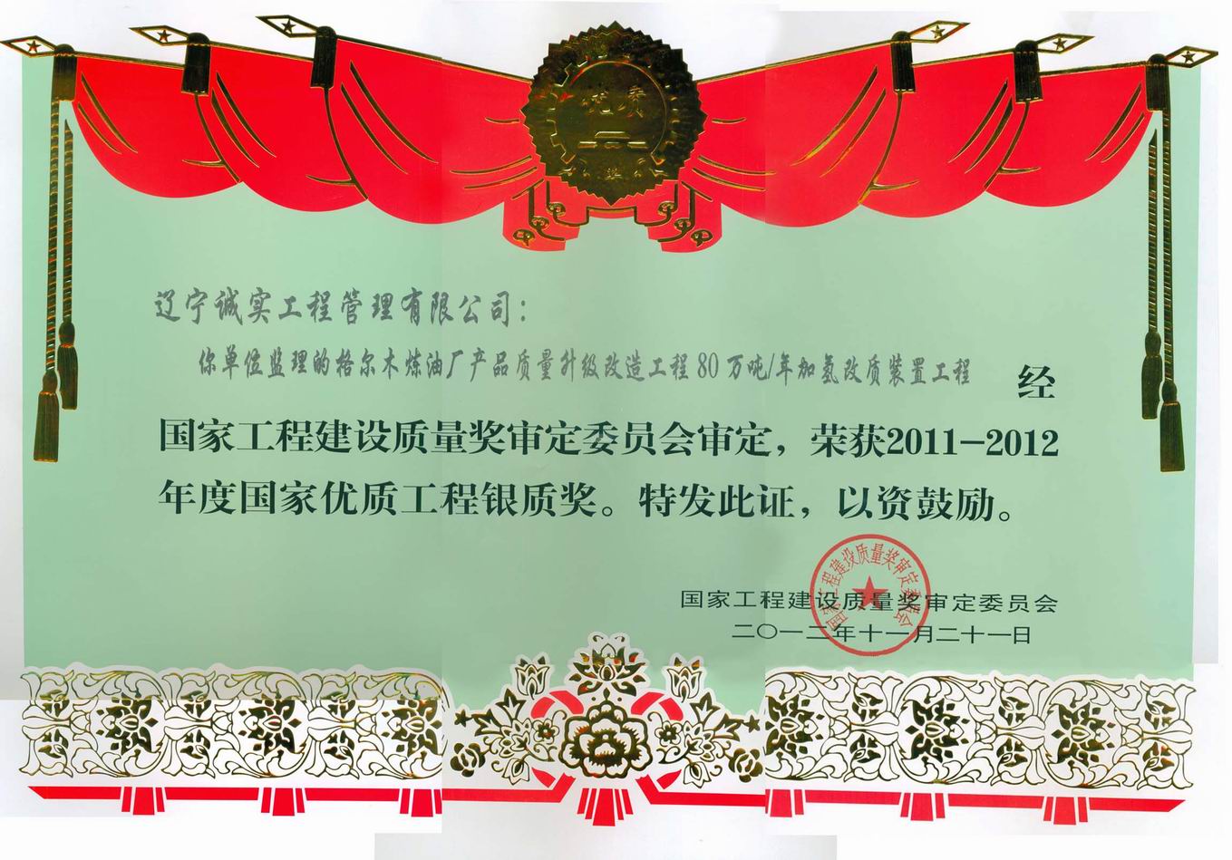 2011-2012年國家優(yōu)質(zhì)工程銀質(zhì)獎(...
