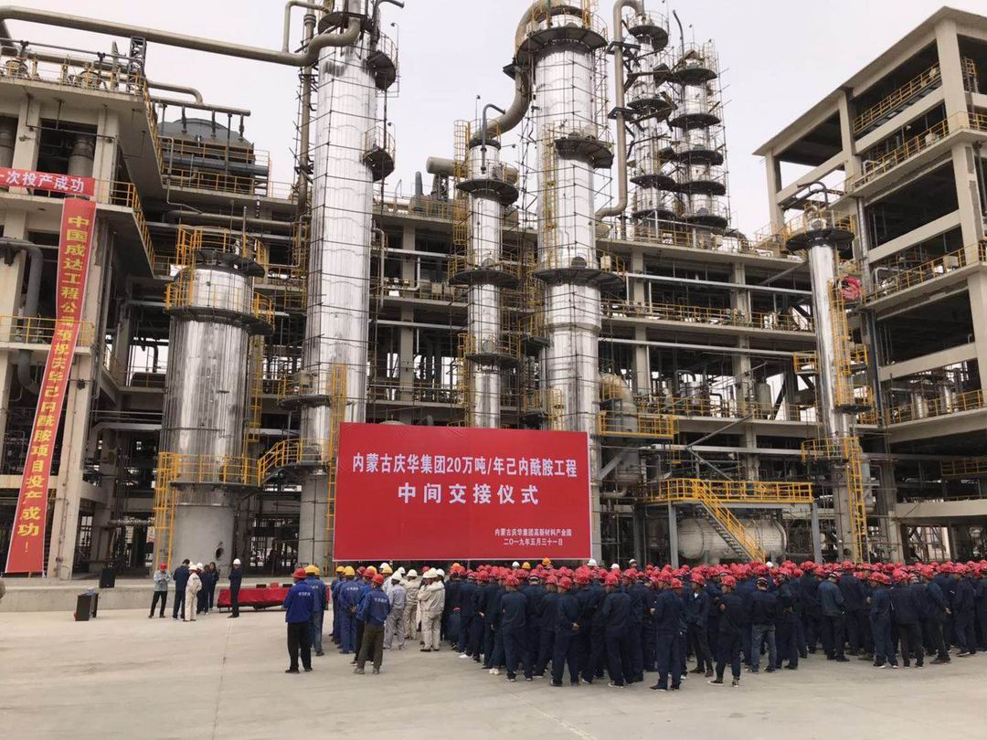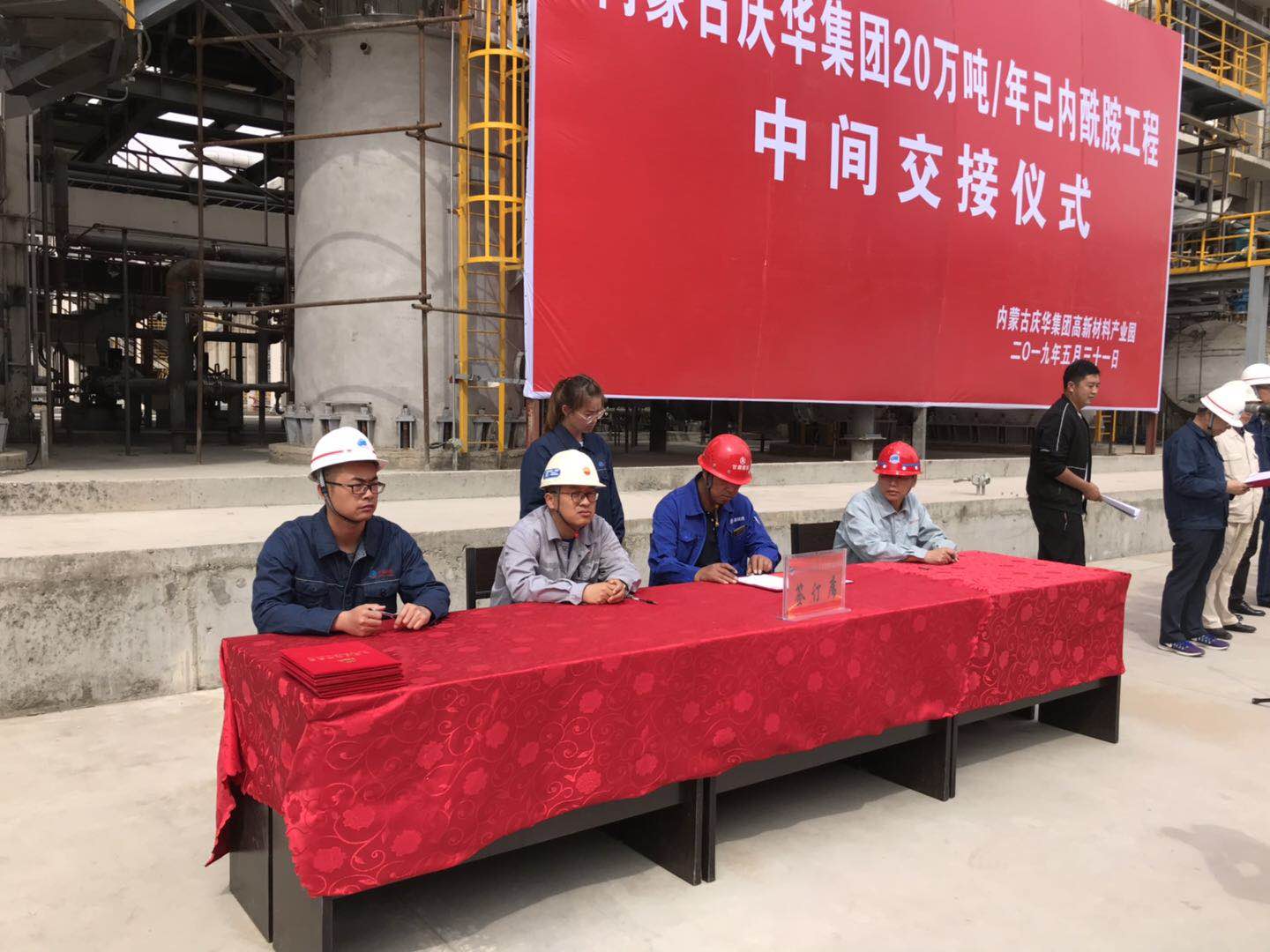 5月31日上午10:00內(nèi)蒙古慶華集團(tuán)20萬(wàn)噸/年己內(nèi)酰胺工程進(jìn)行了中間交接,遼寧誠(chéng)實(shí)騰格里項(xiàng)目部總監(jiān)孫典在交接儀式上進(jìn)行了簽字。交接的部分裝置有:精制、肟化、硫銨車間。