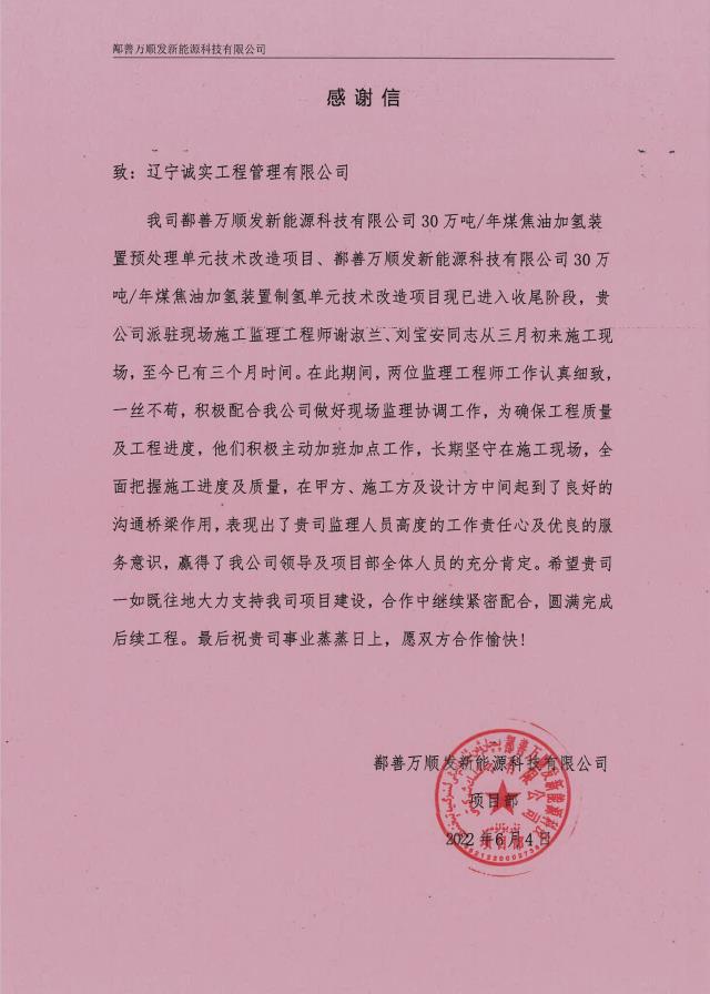 6月6日,公司新疆鄯善項目部收到業(yè)主單位的表揚(yáng)信。信中,業(yè)主言真意切地對我公司監(jiān)理人員在項目開展期間勤勉盡責(zé)的工作精神給予了高度的贊譽(yù)和充分的認(rèn)可。業(yè)主的表揚(yáng)是對公司綜合實(shí)力、服務(wù)質(zhì)量、技術(shù)水平的又一次肯定,誠實(shí)人必將以此為動力,在嚴(yán)守安全底線、嚴(yán)把工程質(zhì)量大關(guān)的道路上砥礪前行!