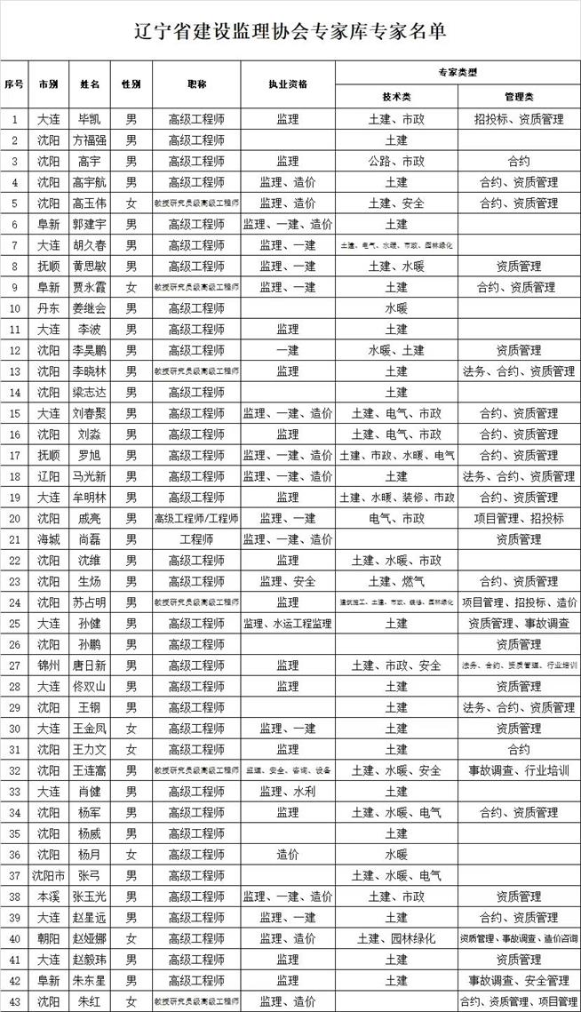 為滿足我省建設(shè)工程監(jiān)理行業(yè)改革發(fā)展需要,省建設(shè)監(jiān)理協(xié)會(huì)決定建立專家?guī)觳⒊闪<椅瘑T會(huì),此次聘請(qǐng)全省專家共計(jì)43人加入專家?guī)。我公司高?jí)工程師黃思敏被聘為資質(zhì)管理(管理類)、土建、水暖(技術(shù)類)專家。此次專家?guī)斓某闪,將充分發(fā)揮行業(yè)專家的作用,加強(qiáng)協(xié)會(huì)技術(shù)力量、為我省監(jiān)理行業(yè)服務(wù),維護(hù)行業(yè)市場(chǎng)各方面的合法權(quán)益。而黃思敏同志也將帶著“誠實(shí)精神、誠實(shí)技術(shù)”為我省監(jiān)理行業(yè)貢獻(xiàn)力量!
