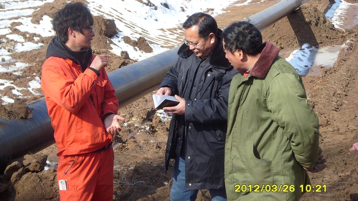 監(jiān)理人員檢查管線補(bǔ)口質(zhì)量
