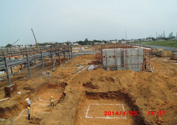 閃蒸罐、含酸氣堿洗塔基礎(chǔ)開挖及壓縮機基礎(chǔ)澆筑完畢